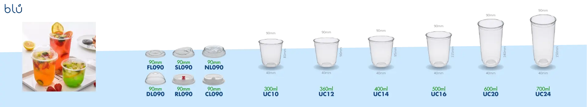 كوب عصير اسود 14 اونص / 400 مل يو بلاستيك شفاف 1000 حبة